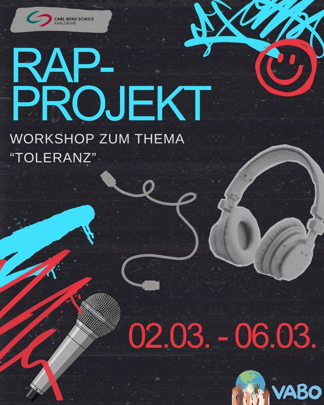 Die VABO-Klasse hat eindrucksvoll gezeigt, wie man starke Botschaften mit starken Beats vermittelt: In einem fünftägigen Rap-Workshop drehte sich alles um das Thema „Toleranz“. Das Projekt knüpft an die erfolgreiche Arbeit des Toleranz-Projektes aus dem vergangenen Schuljahr an und führte sie kreativ weiter.